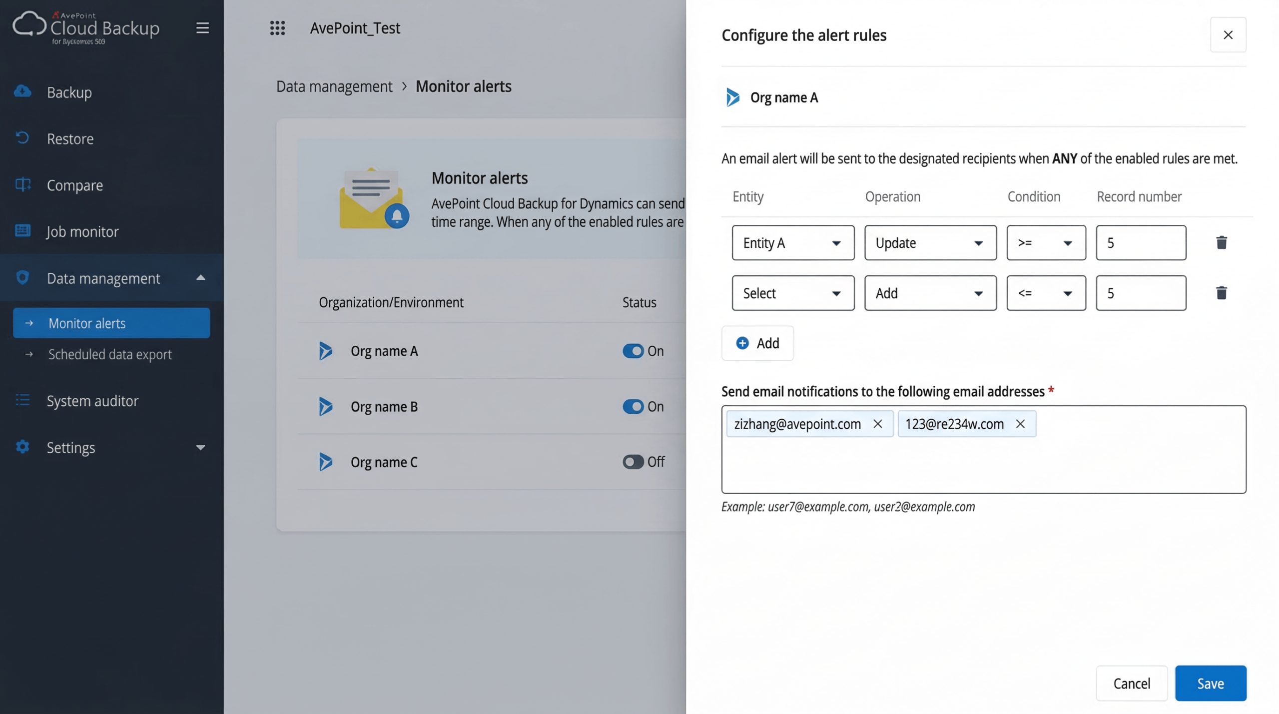 Nowa, zaawansowana funkcja alertów pozwala użytkownikom i administratorom na bieżąco monitorować zmiany w rekordach. Konfigurowalna zarówno na poziomie rekordów, jak i całej organizacji, wysyła powiadomienia e-mail, gdy jakakolwiek jednostka zostanie dodana, usunięta lub zmodyfikowana poza ustalonym progiem akceptacji. Dzięki temu administratorzy i wyznaczeni odbiorcy mogą natychmiast reagować na utratę danych lub nieoczekiwane zmiany, eliminując ryzyko opóźnień w wykrywaniu problemów.