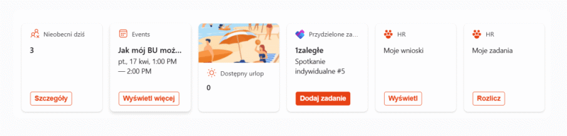 - Twórz personalizowane dashboardy, wyświetlające na przykład pozostałe dni urlopu pracownika.